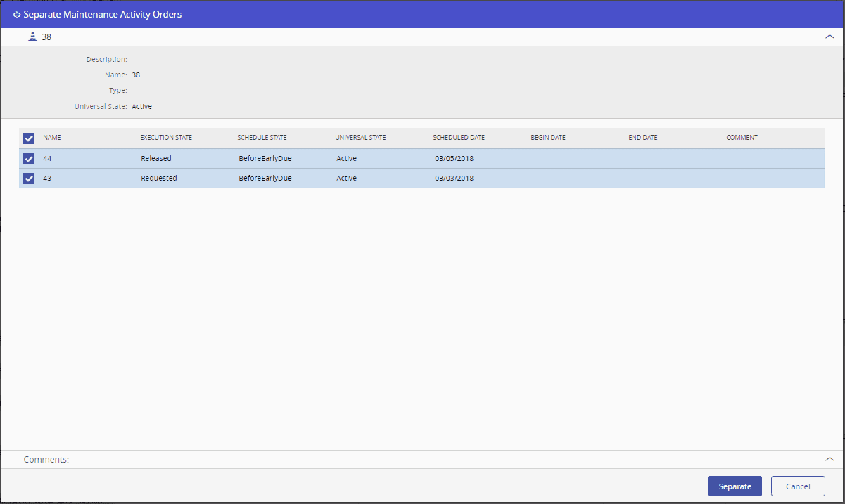 This operation is used to separate one or more Maintenance Activity Orders (MAOs) which have been previously joined.