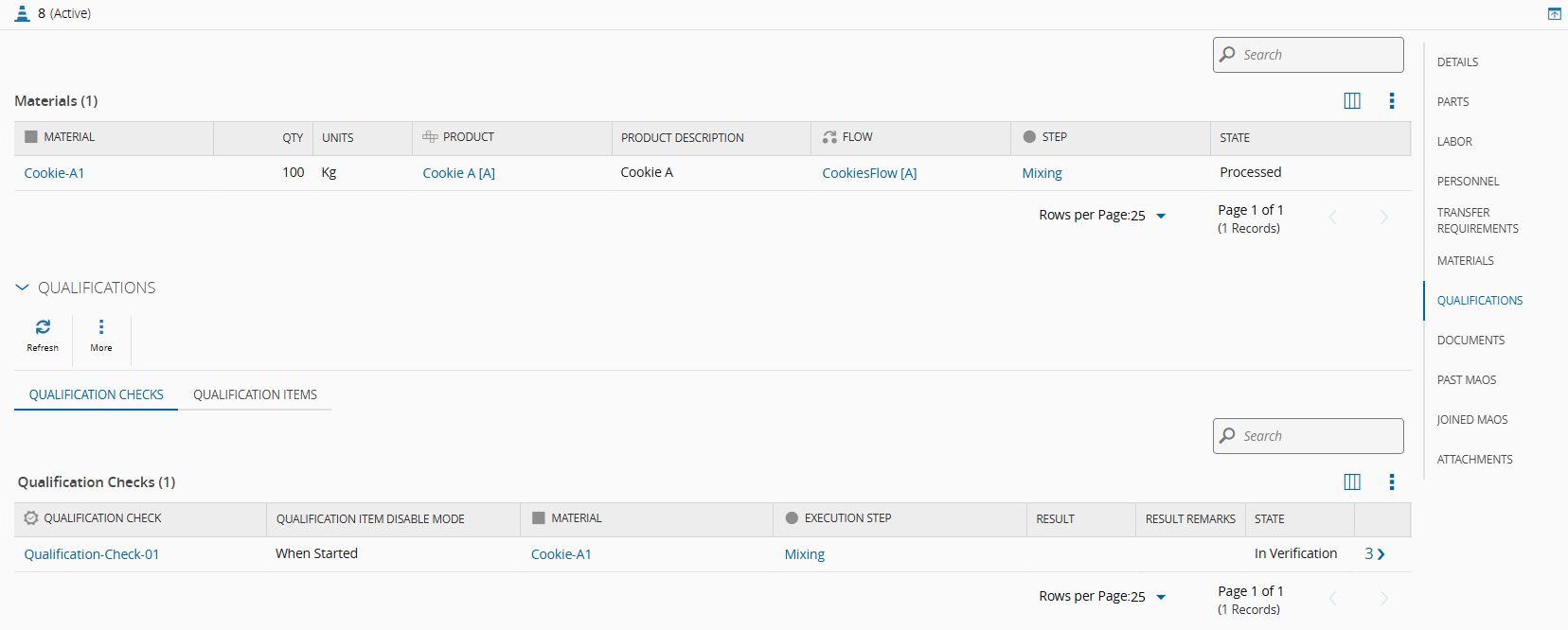 Select the number in the last column, which opens the view with all the Verifications configured for the selected Qualification Check.