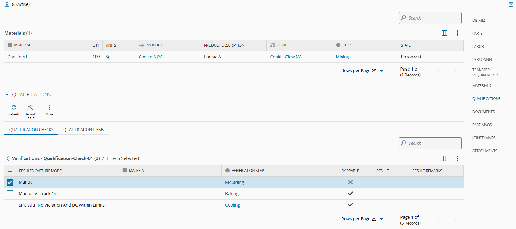true. - The Result of the MAO Qualification Check Verification must be empty.