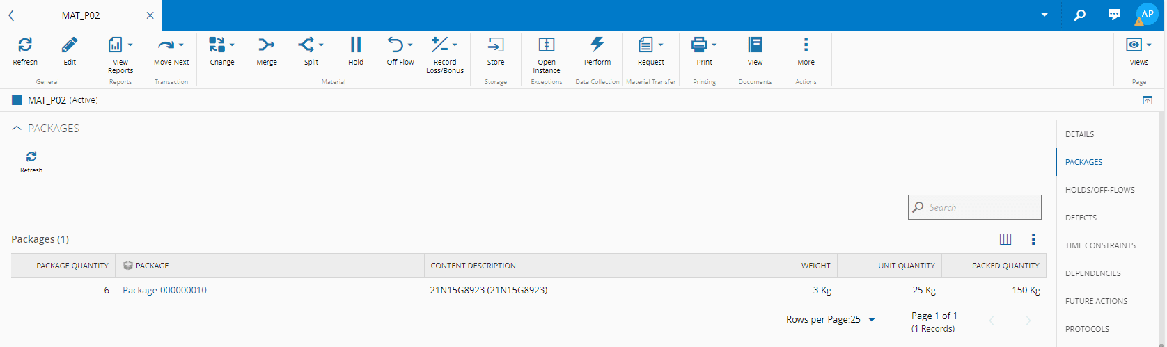 • Packages IDs information of the packages created for this Material.