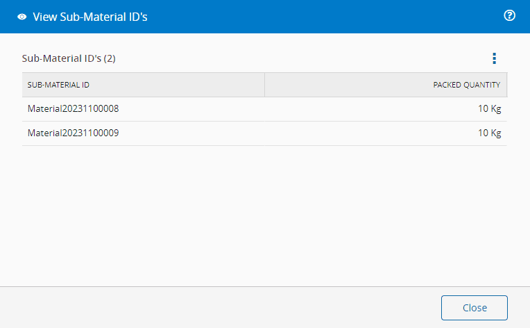 5. Scan the Sub-Material IDs or use the manual Insert Barcode and select OK.