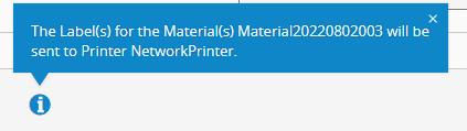 If the Step where the Material is currently placed has the Print Material Labels Automatically property set to true, that information will be displayed on the bottom section of the wizard.