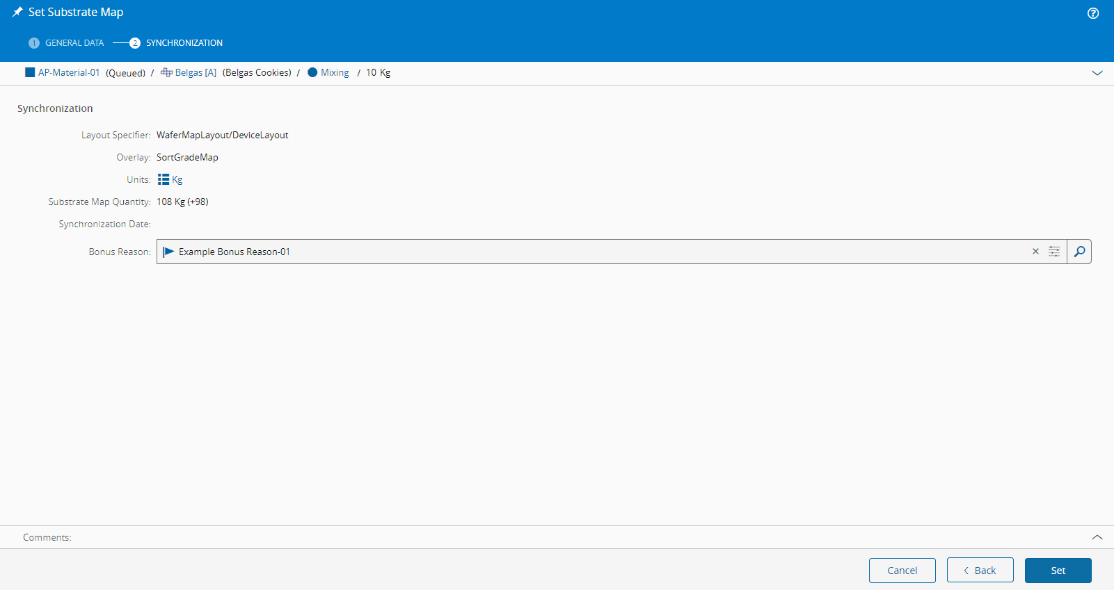 The Set Substrate Map wizard is called from the Details page of the selected Material. Depending on the current system status, the Set Substrate Map button may be visible on the top ribbon or under the More actions button.