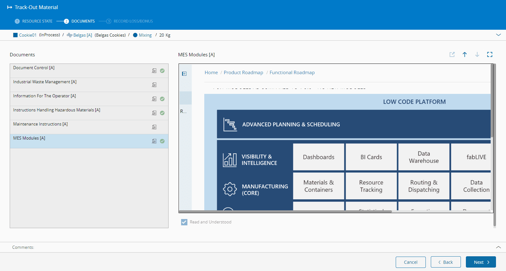 Furthermore, if the Material is not TopMost and is in a Line Step, then the Checklist will be retrieved from the respective Line Step Resource.