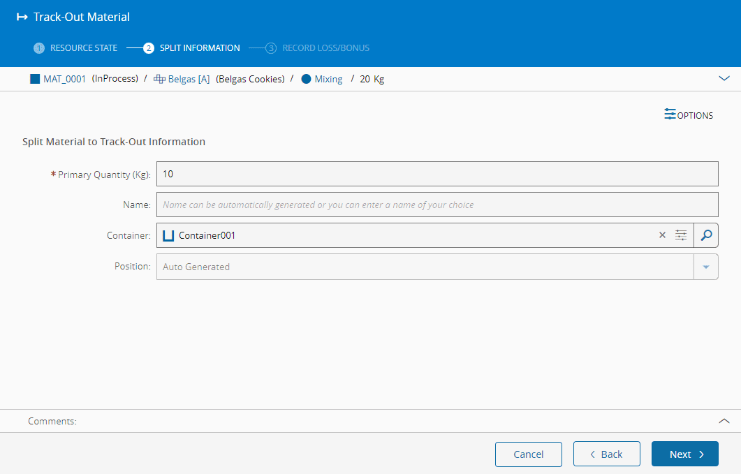 This step is used to allow partial track-outs, a situation where you can track-out a quantity different than the complete Material primary quantity.