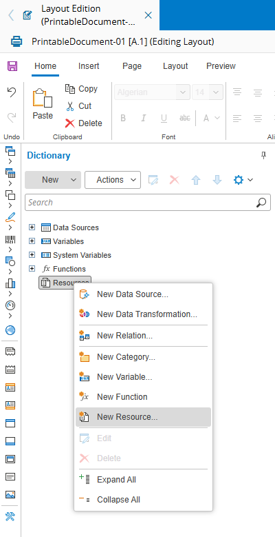 To add Custom Fonts, select the Dictionary tab, right click on Resources and select New Resource: