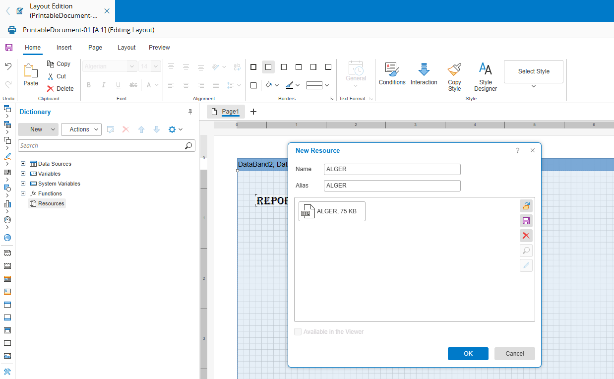 The layout designer is an integral part of the third-party software used for document printing in Critical Manufacturing (Stimulsoft Reports.Web). It is a rich designer with many available options. This manual does not cover every feature of this designer; only the basic features. More detailed information on all features can be found on the Stimulsoft website ⧉.