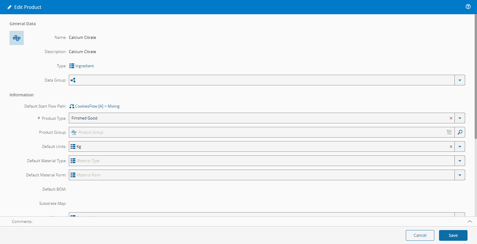 The Edit Product wizard can be called from the Product page within the Business Data Group.