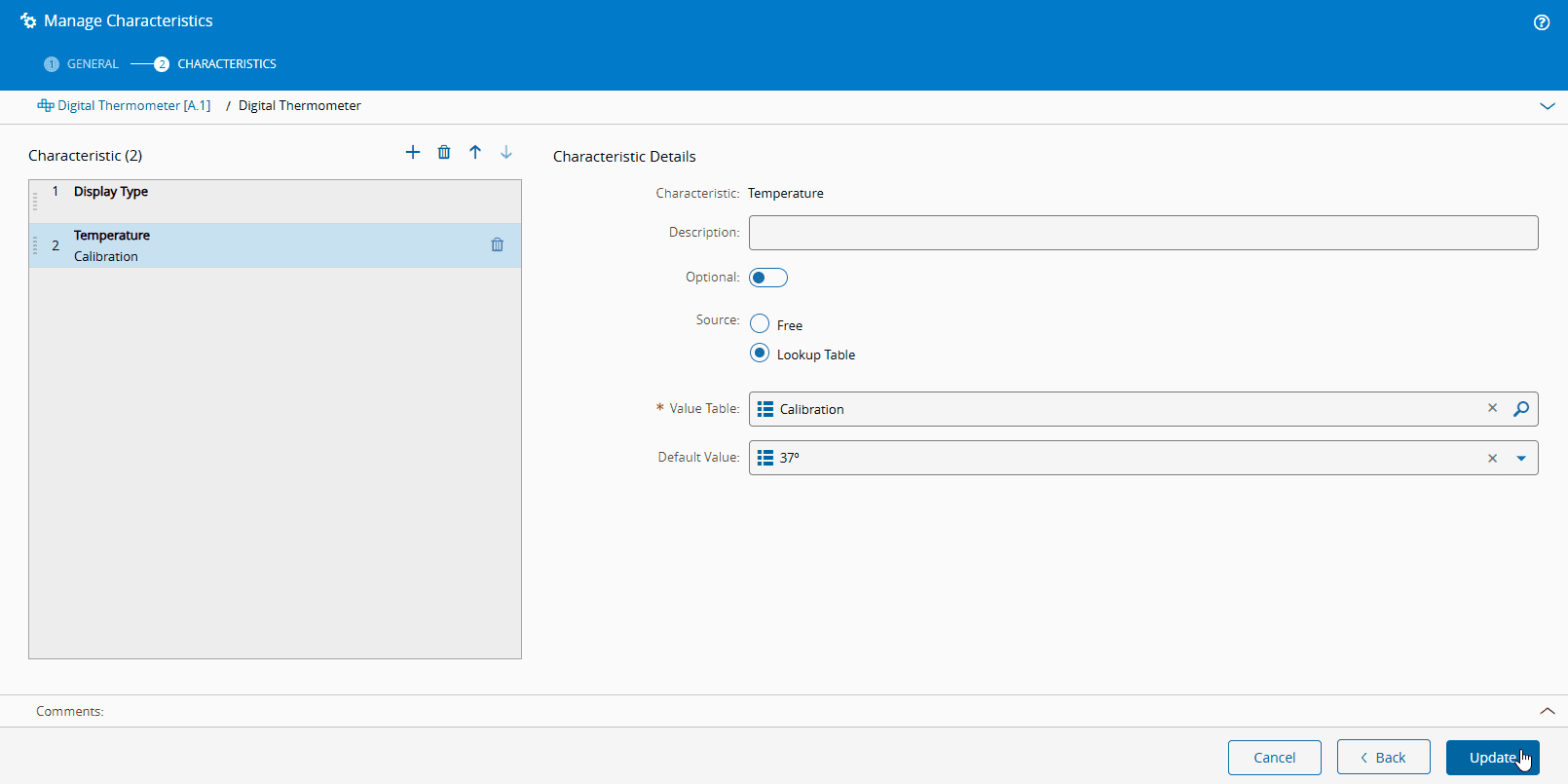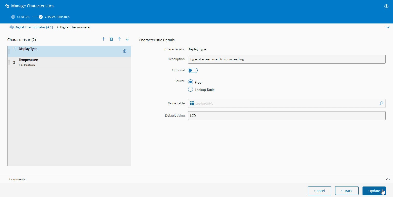 - Description - the description of the characteristic.