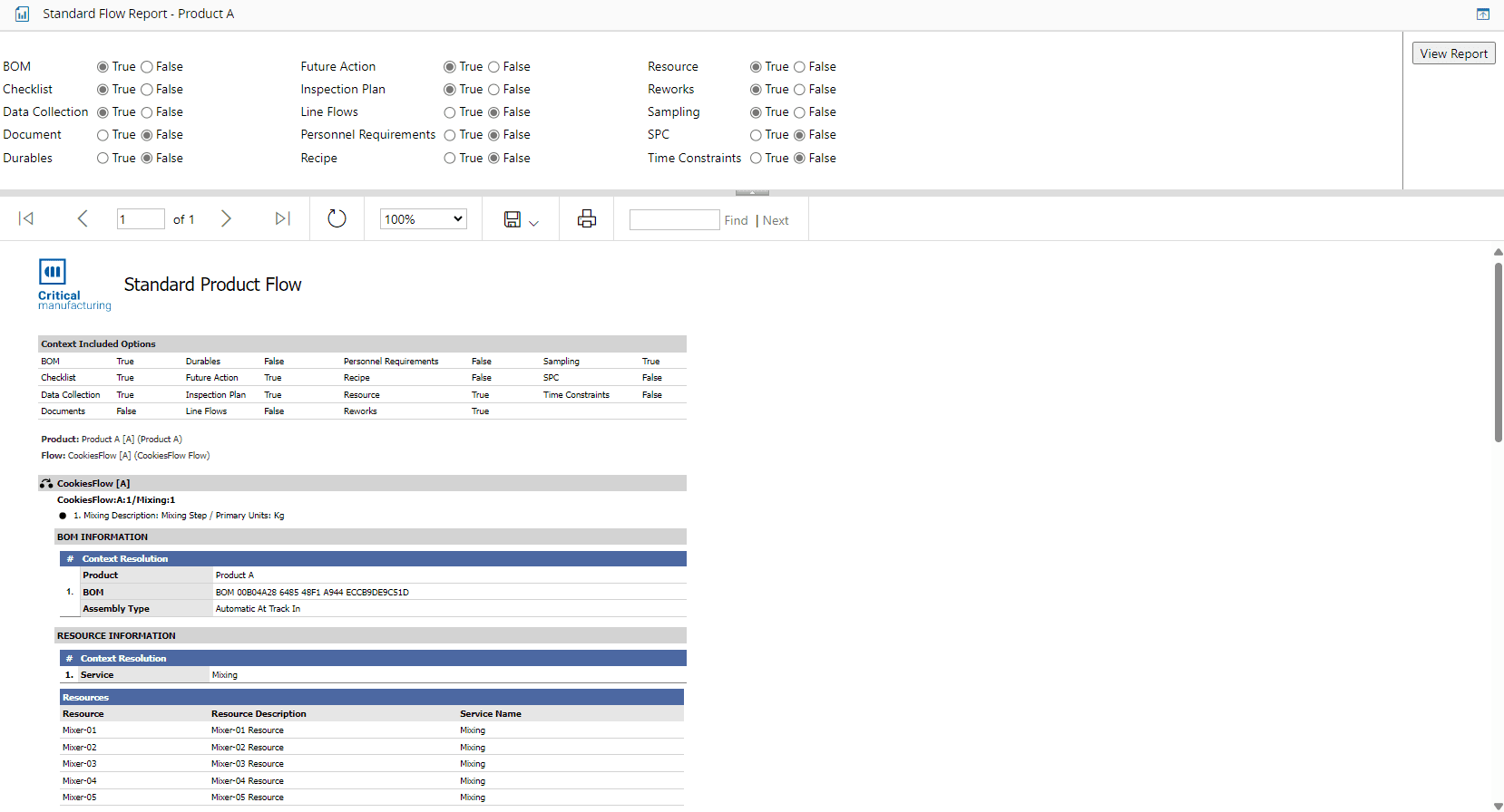 This report provides access to the Product Standard Flow report of any Product which is available in the Operational Data Store (ODS) database.