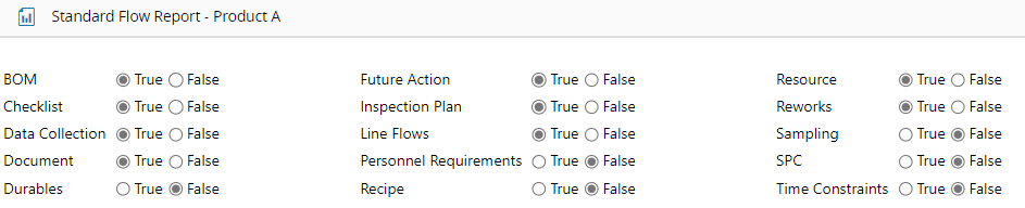 The information regarding the Line Flows and the Reworks associated with the Product will appear at the end of the report.