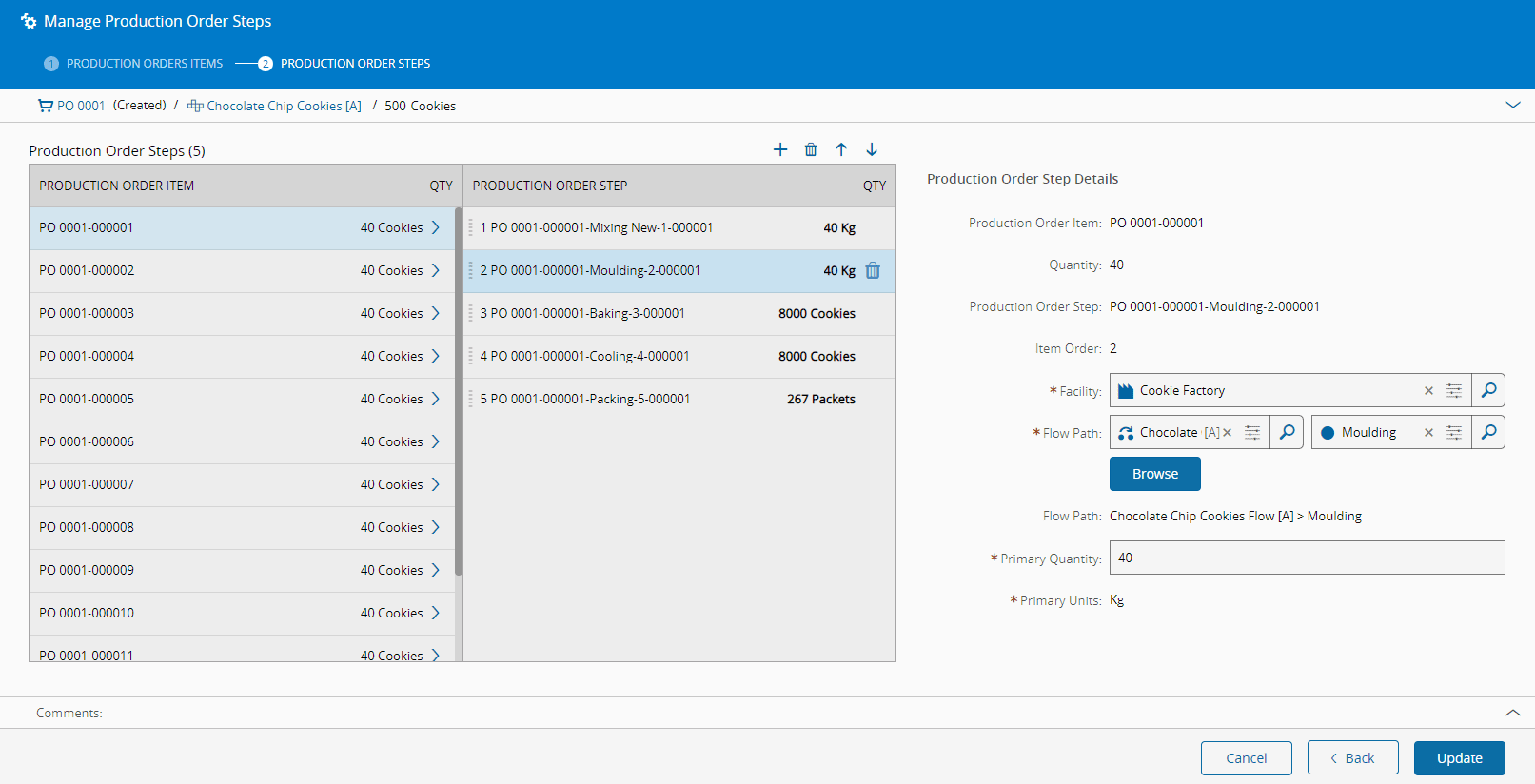 Manage Production Order Steps#