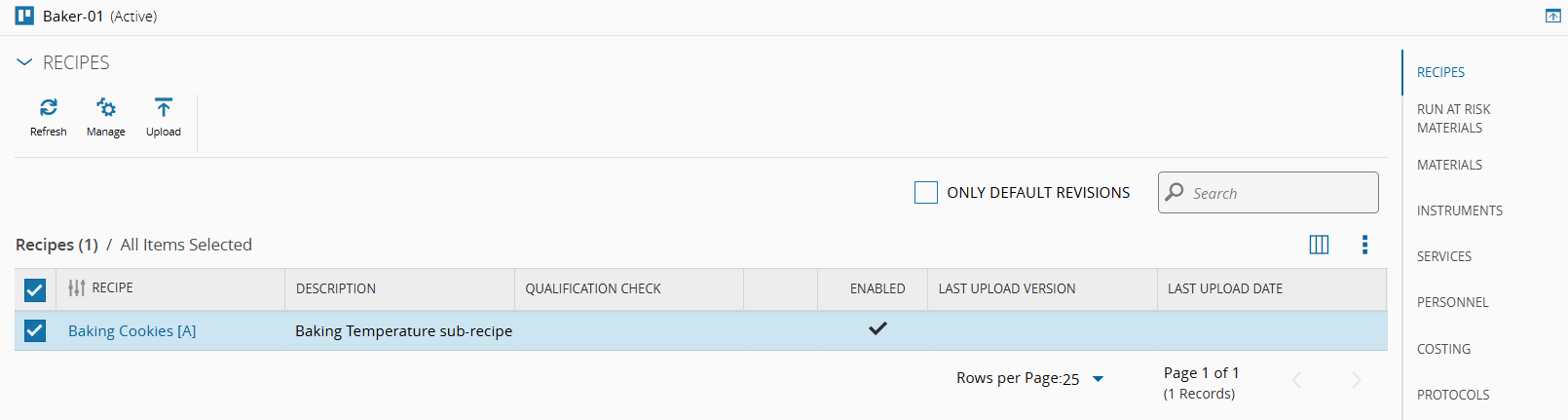 4. The selected Recipes are uploaded to the associated Resource. After the upload is completed, the system updates the Last Upload Date and Last Upload Version in the Recipes section.