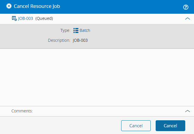 - Choose a Resource Job with a Created or Queued System State, then select the Cancel button on the top ribbon.