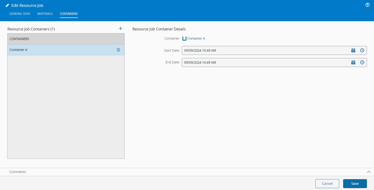 In this wizard, you can add, update, or remove Resource Job Containers by selecting the or icons, respectively.