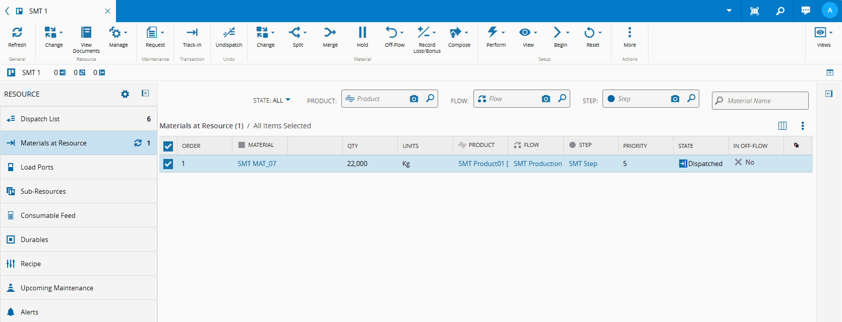 • The Material exists, is Top-Most and is Dispatched or In Process at the Resource.