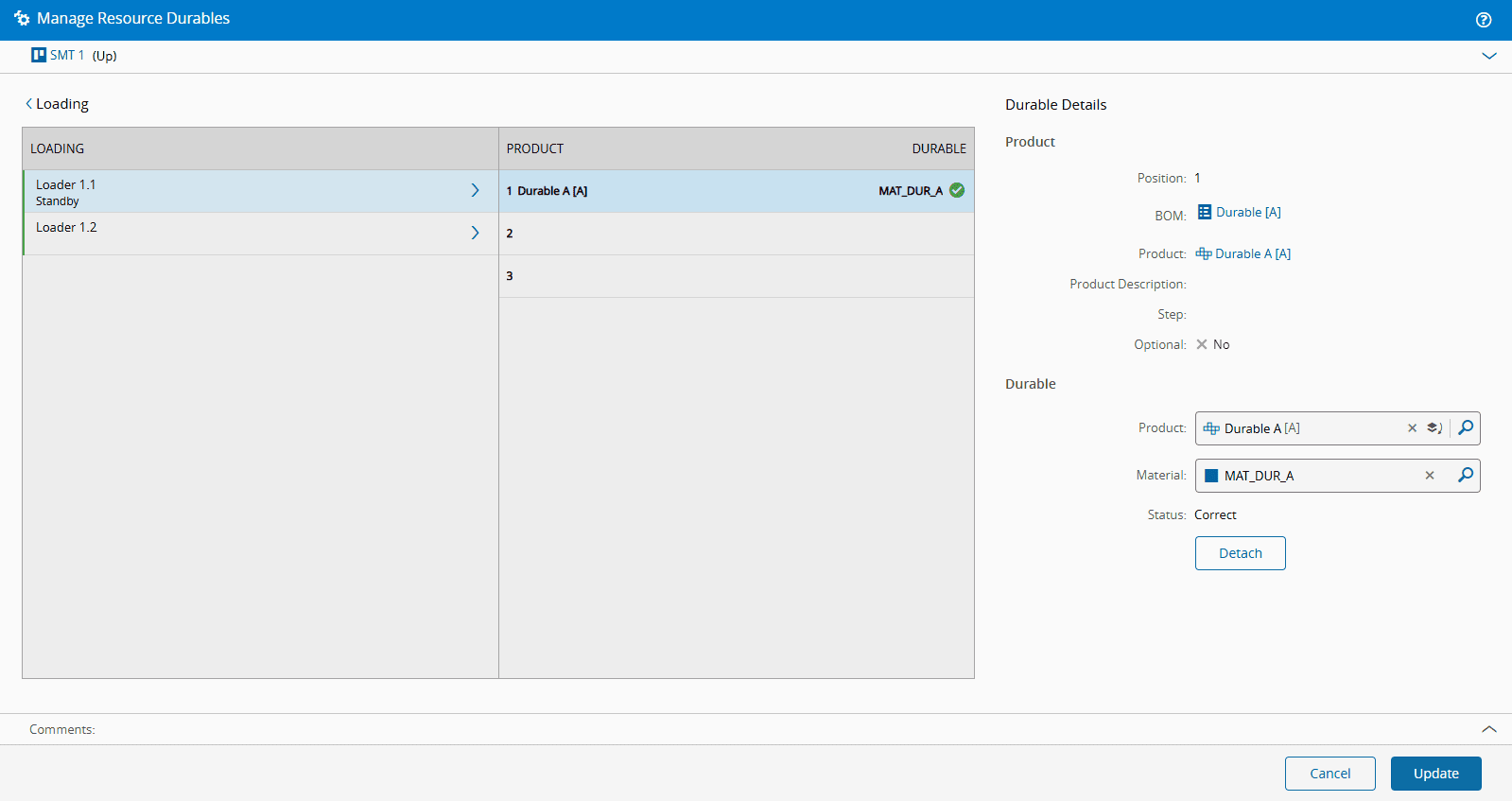 If you select Durables without selecting a Material, the Manage Resource Durables operation is called.