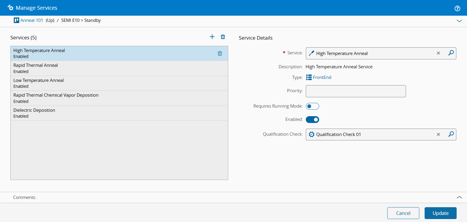 true). - Optionally, select a Qualification Check to be applied to the Service. This option is available only for Resources with Processing Type Process or Line.