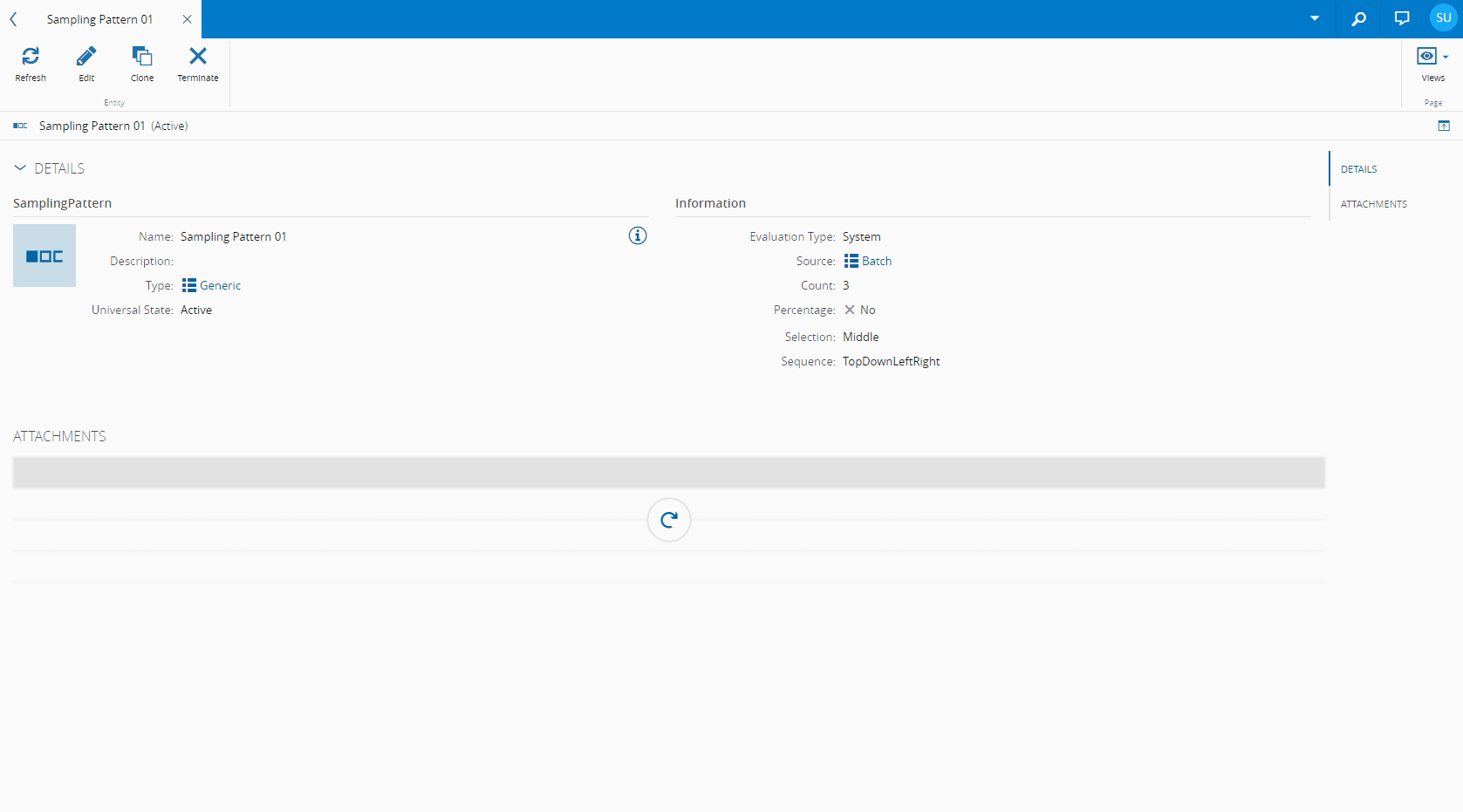 - Attachments - shows the documents that are attached to the Sampling Pattern and enables you to attach additional documentation to the Sampling Pattern.