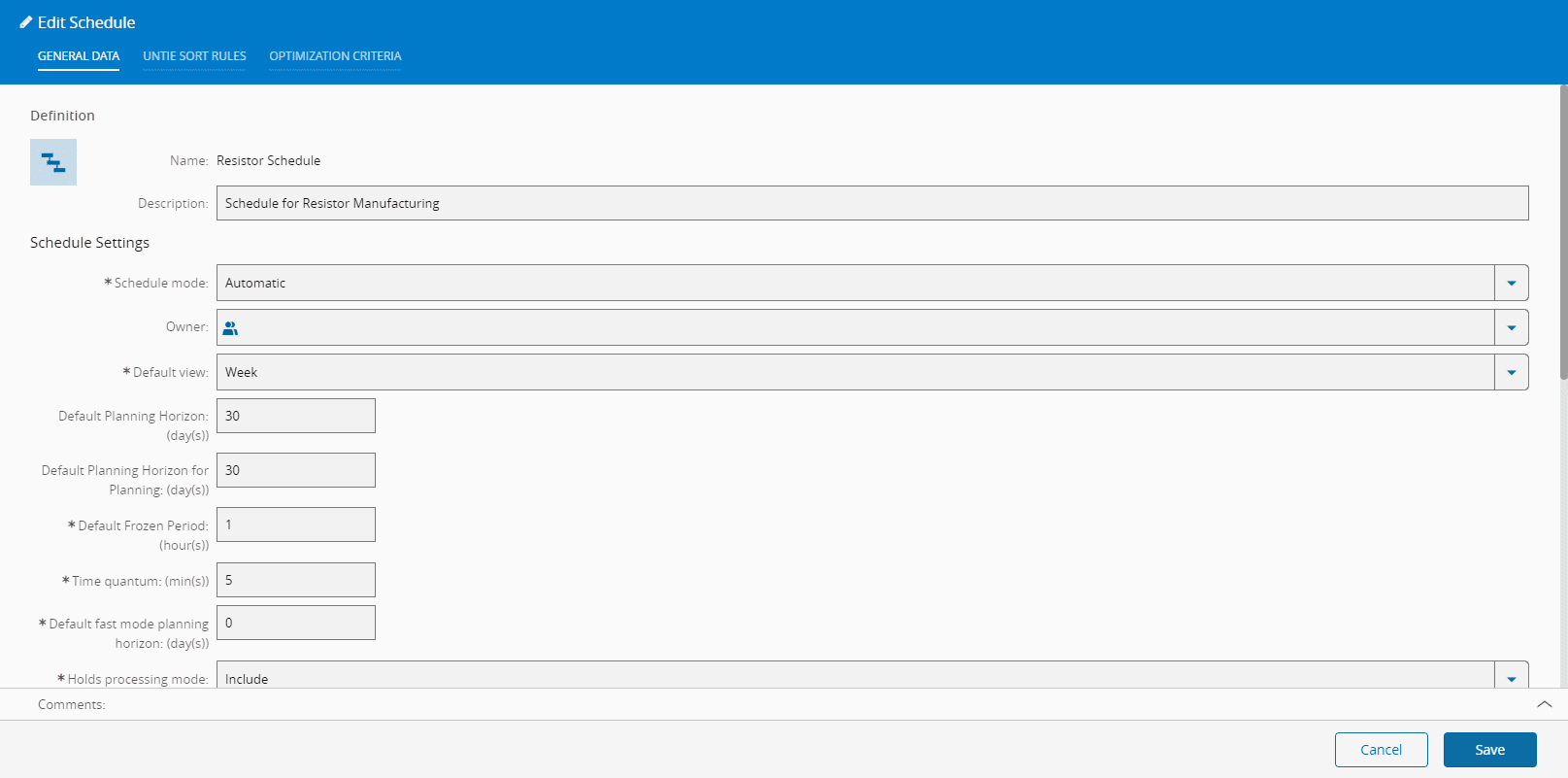 The Edit Schedule wizard can be called from the Schedule page within the Business Data Group.