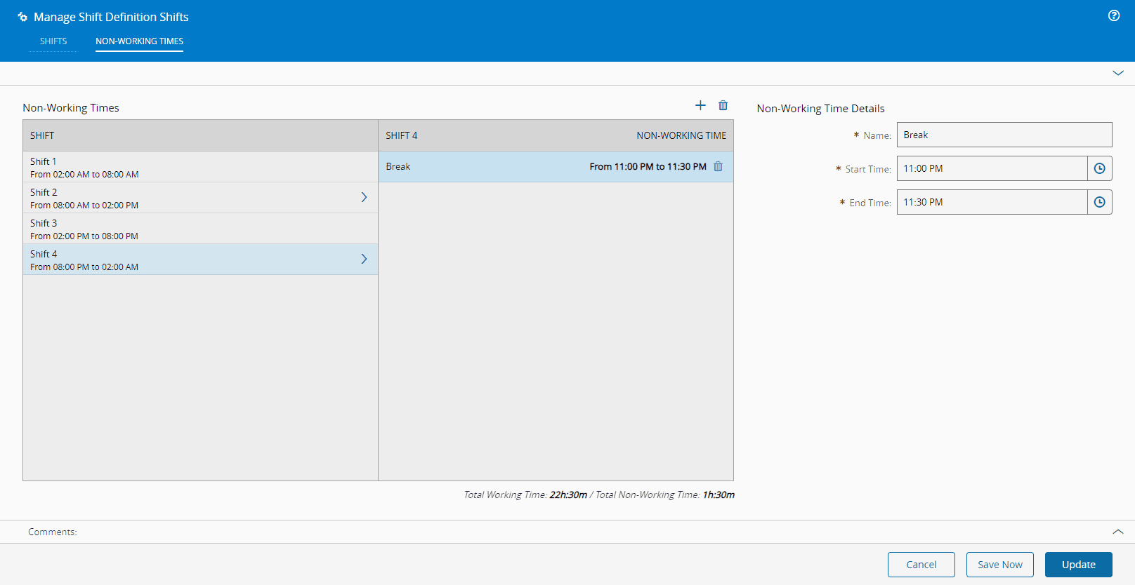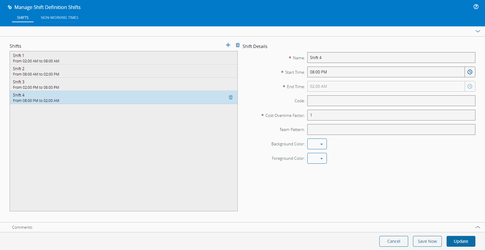 The Manage Shift Definition Shifts wizard can be called from the Shift Definition page within the Business Data Group.
