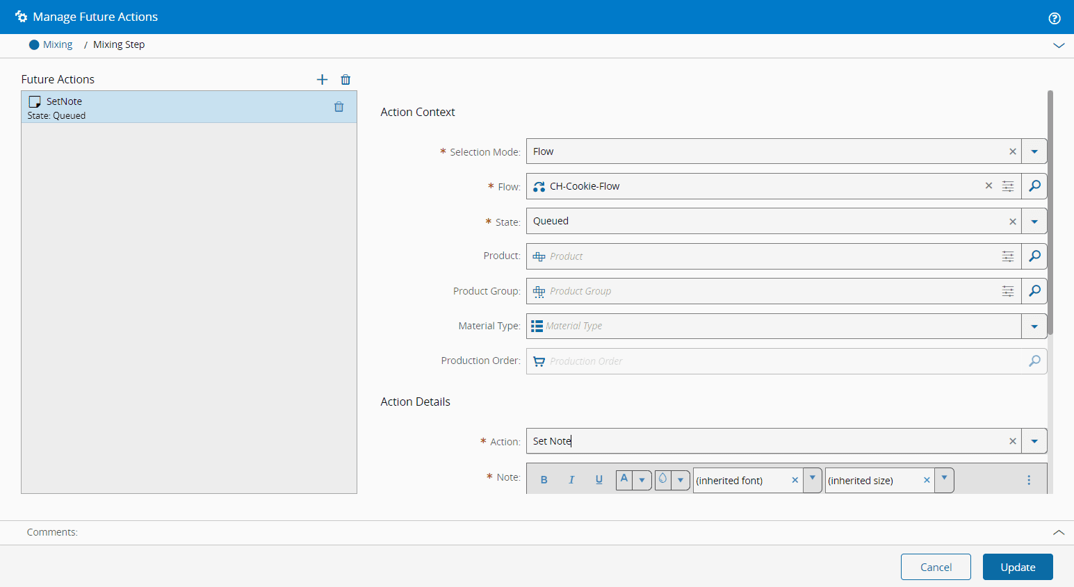 - Using the button, add all any wanted Future Action. For more information, see Manage Material Future Actions.