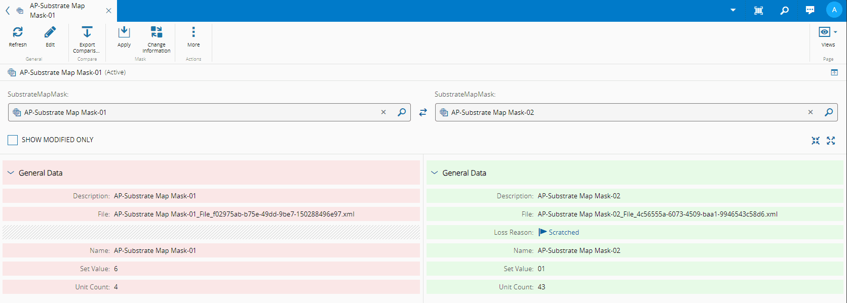 The Substrate Map Mask page displays general information on the specific Substrate Map Mask. In addition it enables you to perform all the operations that can be performed on a specific Substrate Map Mask.