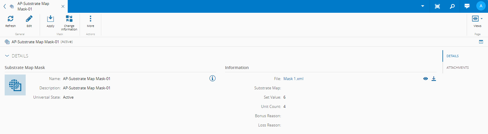 • Attachments - shows the documents that are attached to the Substrate Map Mask and enables you to attach additional documentation to it.
