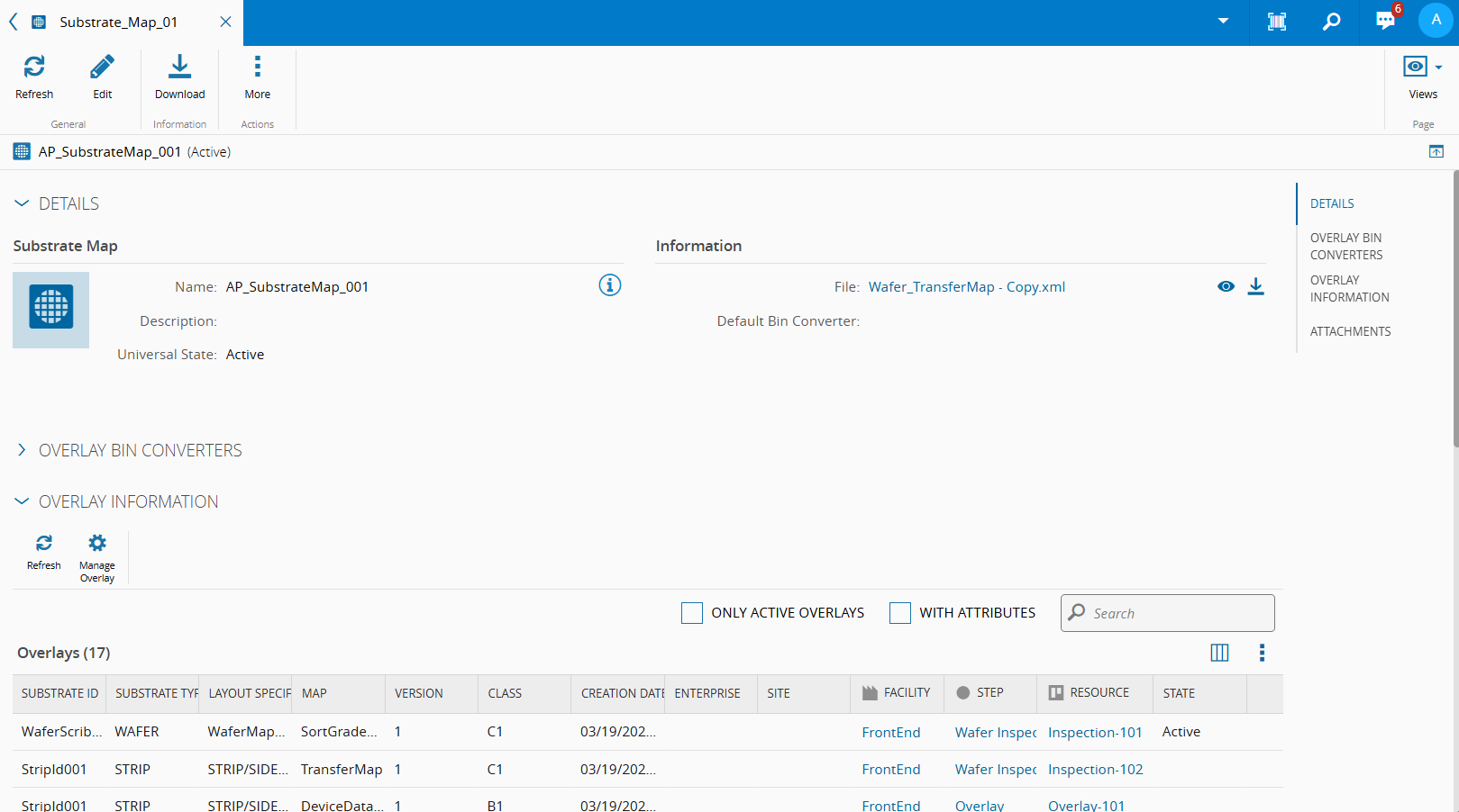 It will also be available in the Details page of the Substrate Map in the Overlay Information section. Additionally, from here, if you select the Overlay, the Manage Overlay Information button is displayed, and you can manage information as mentioned above: