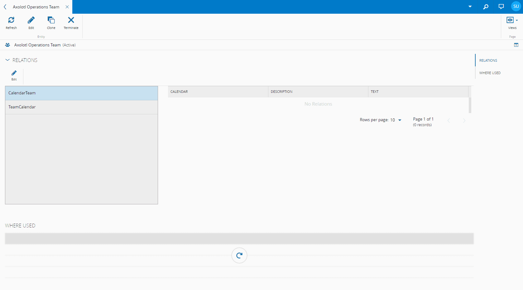 • Relations - displays the existing Relations between the Team and other entities and enables the user to edit them. For more information on Relations, visit the section Relations.