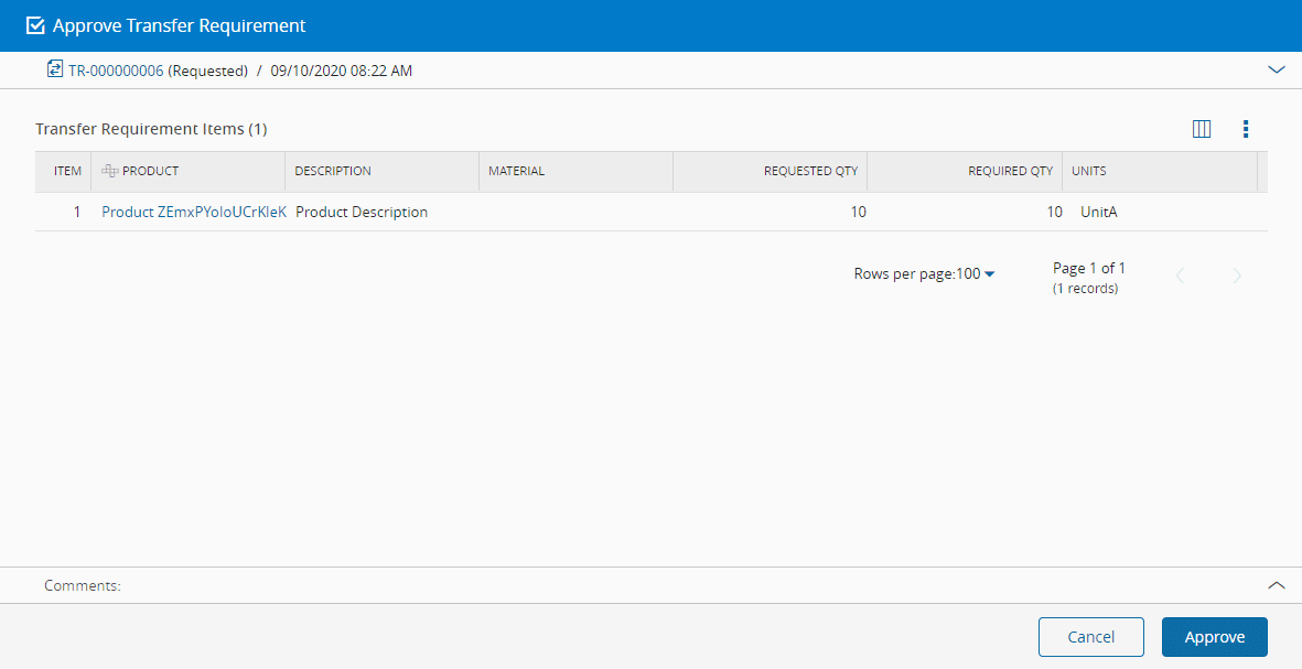 This operation is used to approve a Transfer Requirement.