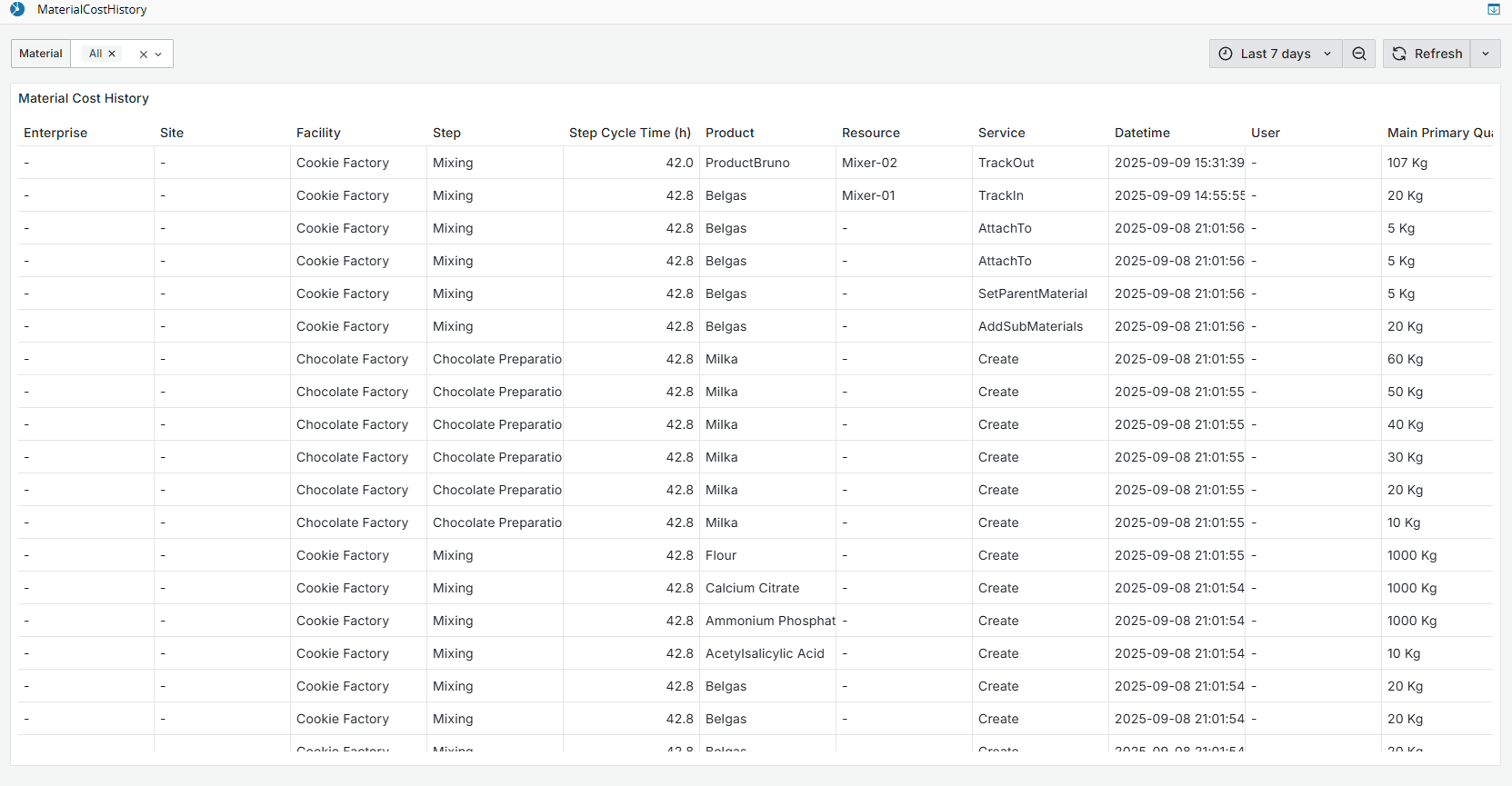 | Employee | Name of the operator or employee executing the transaction. | MaterialMovementCost |