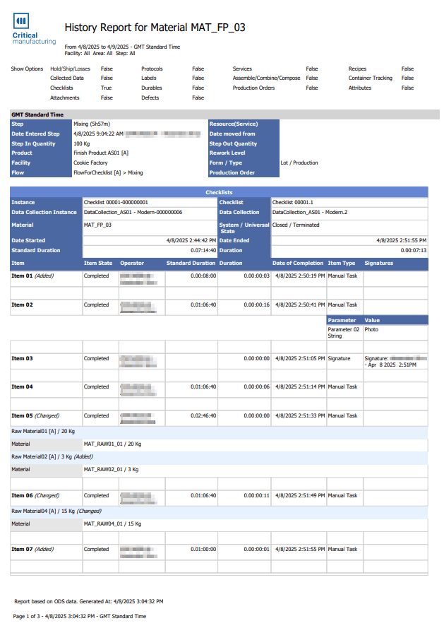 The available date filters (Start and End) should be used exclusively to select the entry and exit dates in the Steps where the Material has passed. Therefore, once the sequence of Steps included in the timeframe is determined, all associated information will be displayed, along with information on attachments that are not bound to a particular Step, provided that the Material was in a Step during that timeframe (that is, between Date Start and Date End).