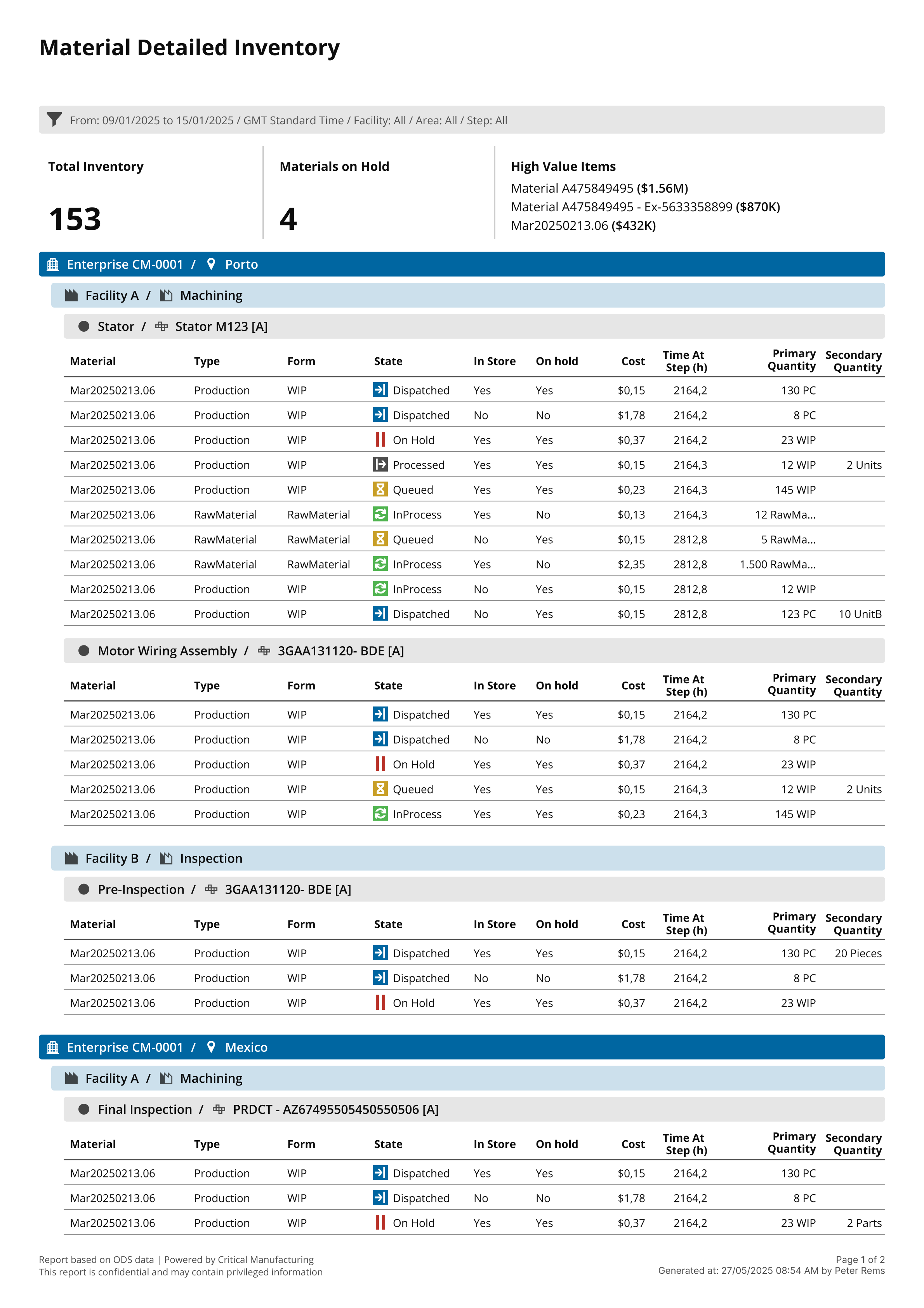 - Time At Step - Total time Materials have spent at the Step (in hours).