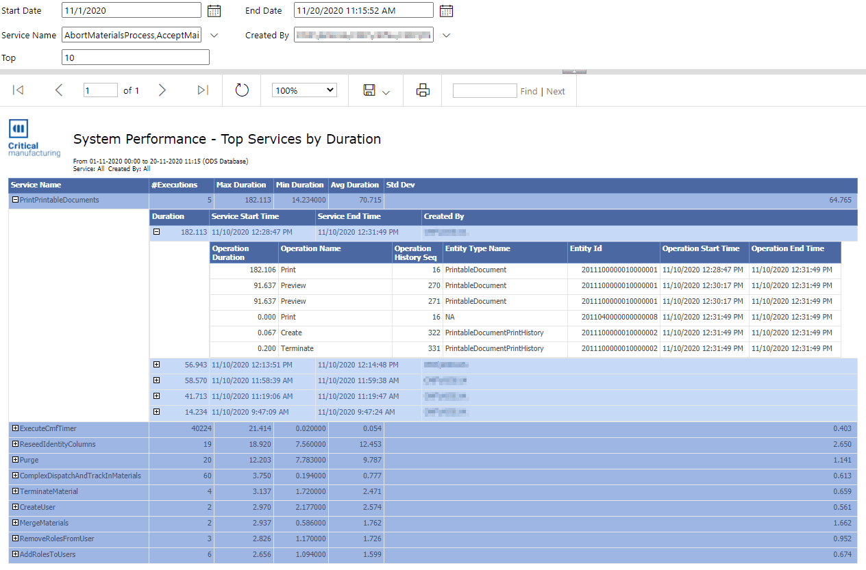 This report displays information about the services which take the most time.