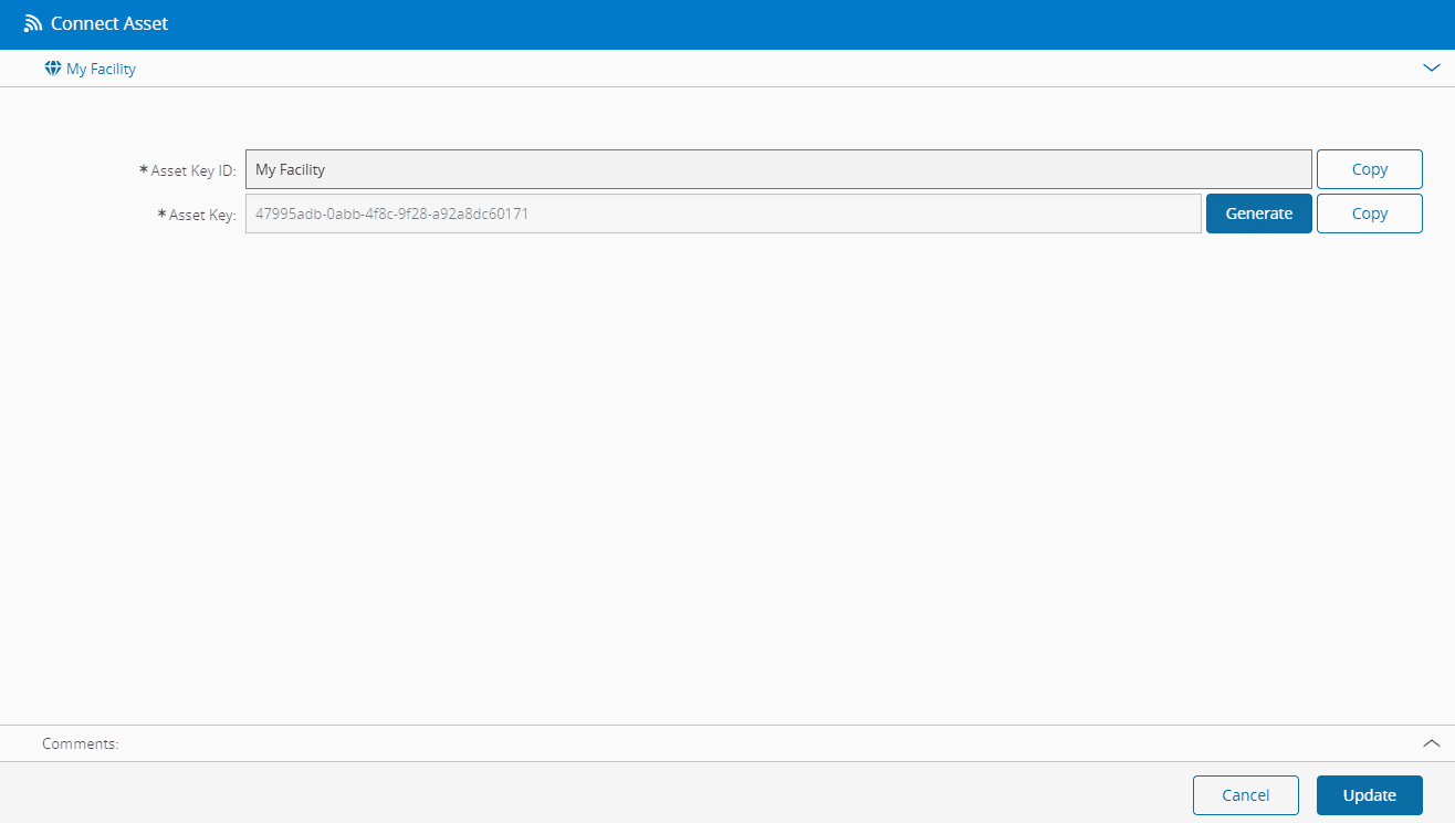 - The Asset Key will be automatically generated. If needed, select the Generate button to force the system to create a new key.