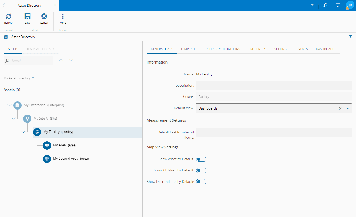 - Select the appropriate Asset from the Asset Directory tree.