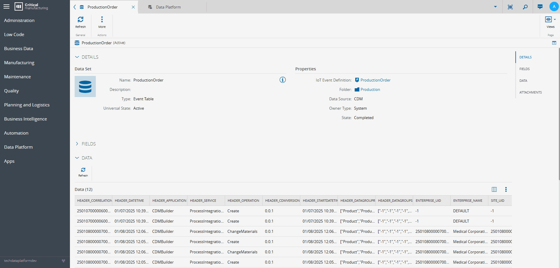 Fields: This section lists all the properties of the Data Set in a paginated table. They can be filtered by