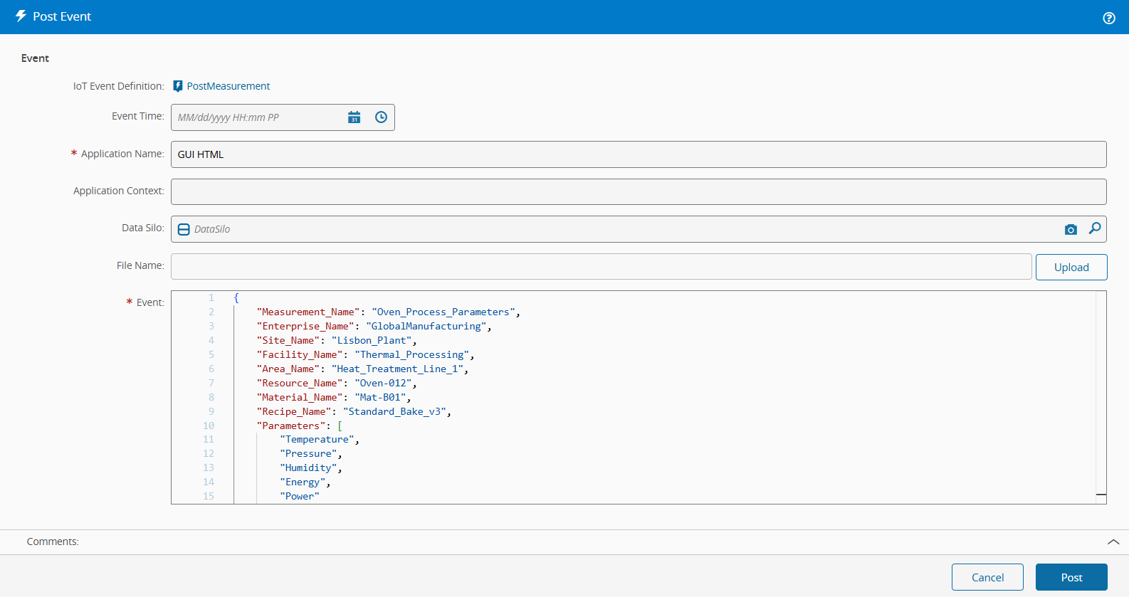 - On the IoT Event Definition page, select the Post button on the top ribbon.