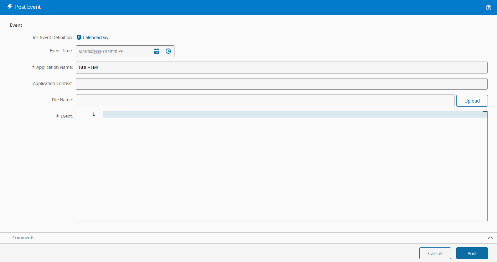 - Optionally, specify an Event Time if the event should be posted with a specific date and time.