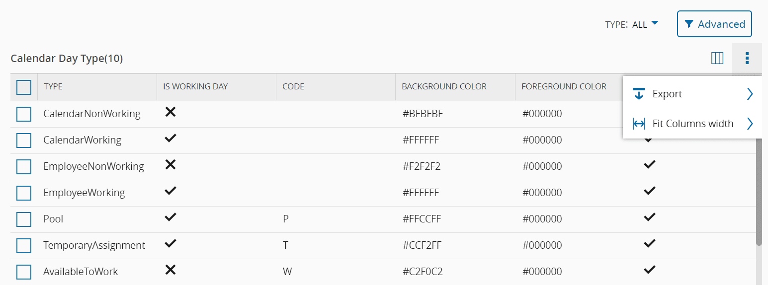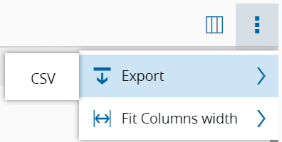 The system also allows exporting the current data from the grid to a comma-separated value formatted file by selecting the More button and selecting the Export option together with the appropriate format.