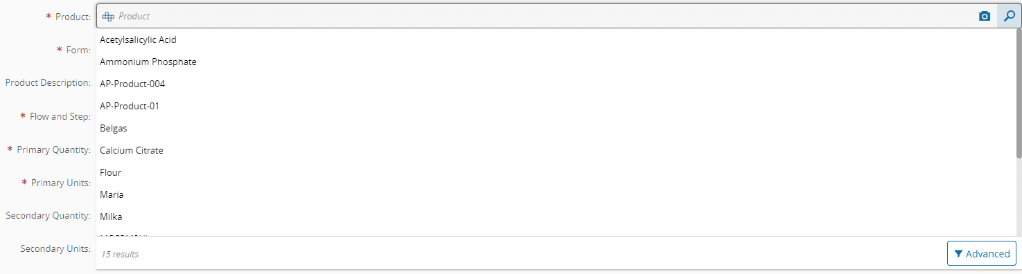 When an entity has properties defined as searchable, the property values will be displayed in the control when it is opened and will show the matching values as the terms are input into the search box, depending on the specific search type defined for the property.