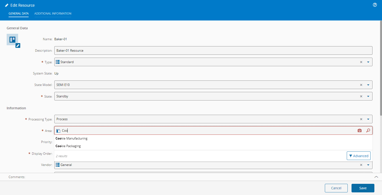 You can use barcodes to find the object you need in Critical Manufacturing MES. Select the icon in the textbox: