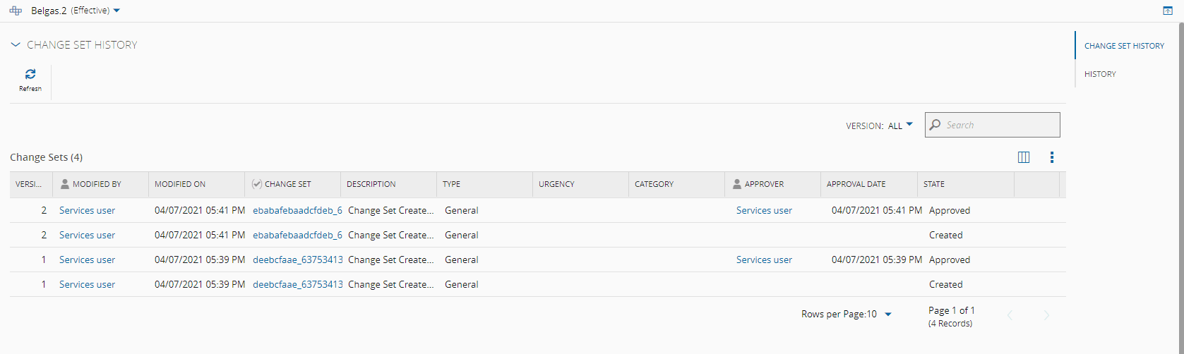 All versioned objects have one or more associated Change Set and its history can be accessed within the History view of the object.