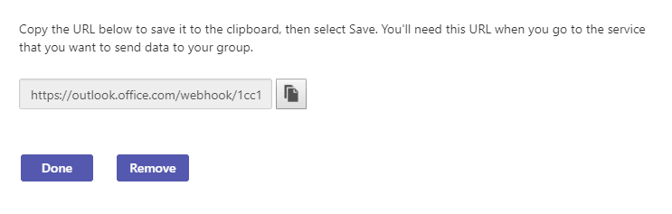 - Copy the URL for the created webhook.
