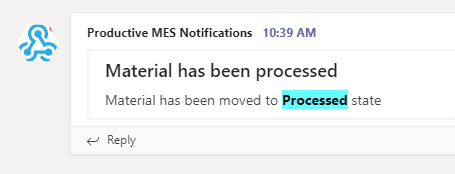Notifications can be created in MES and sent to an instance of Microsoft Teams through the use of webhooks, requiring minimal configuration. There is one configuration entry that is essential to a proper use of this functionality: /Cmf/System/Notification/Integration/TeamsWebhook, that must contain the webhook to which the MES will send the Notification. To configure the system, follow these steps: