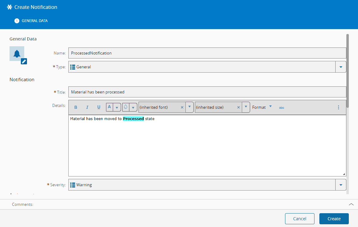 Notifications are part of Alarm Management, which is a Critical Manufacturing optional module.
