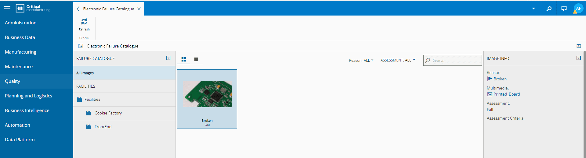 5. Go to the Quality menu, and the Electronic Failure Catalogue is automatically updated with the new Reason: