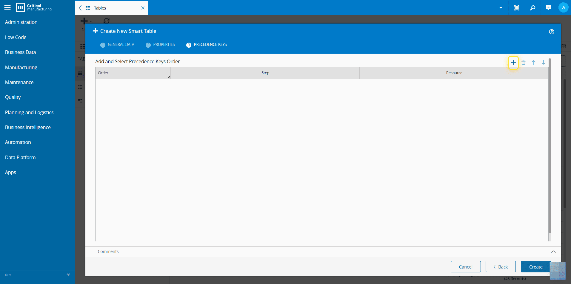 For more information, see Smart Tables - Critical Manufacturing Documentation Portal ⧉