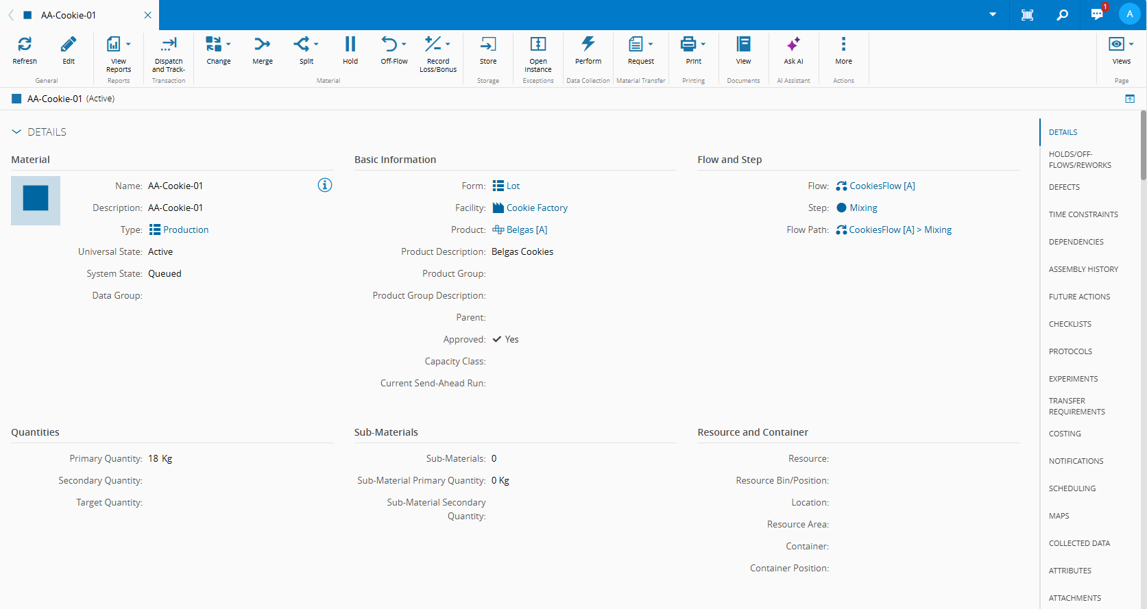 The full details of the new Material, including the Primary Quantity, can be seen here: